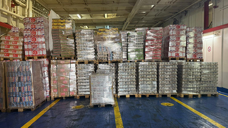Afet ve Acil Durum Yönetimi Başkanlığı (AFAD) koordinasyonunda hazırlanan ve yaklaşık 900 tonluk insani yardım malzemesi taşıyan gemideki yüklerin limana indirilmesi için çalışmalar devam ediyor.